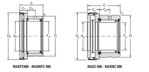 RAXPZ400 – RAXNPZ 400 RAXZ 500 – RAXNZ 500DesignationsFw mmda mmDa mm10RAXPZ 410RAXZ 51012RAXPZ 412RAXZ 51215RAXPZ 415RAXZ 51517RAXPZ 417RAXZ 51720RAXPZ 420RAXZ 52025RAXPZ 425RAXZ 52530RAXPZ 430RAXZ 53035RAXPZ 435RAXZ 53540RAXPZ 440RAXZ 54045RAXPZ 445RAXZ 54550RAXPZ 450RAXZ 55060RAXPZ 460RAXZ 56070RAXPZ 470RAXZ 570